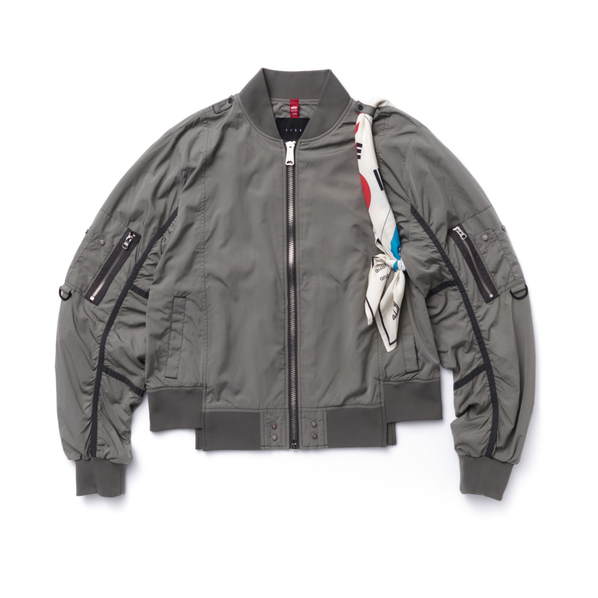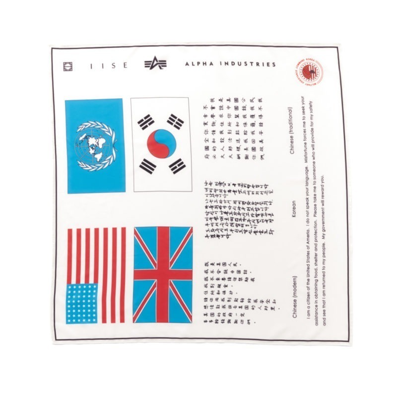 IISE REIMAGINES THE ORIGINAL “BLOOD CHIT” JACKET IN A 2 PIECE CAPSULE COLLECTION. “BLOOD CHIT’S” WERE A TYPE OF SURVIVAL AID FREQUENTLY SEWN INTO THE INSIDE OF FLIGHT JACKETS FOR PILOTS THAT WERE SHOT DOWN OVER ENEMY TERRITORY. THE FLAGS CONTAINED MESSAGES IN VARIOUS LANGUAGES THAT REQUESTED HELP IN AVOIDING CAPTURE AND SAFE RETURN BACK TO U.S. FORCES IN EXCHANGE FOR A REWARD. THE COLLECTION CONTAINS A REWORKED “BLOOD CHIT” FROM THE ORIGINAL FLAGS USED DURING THE KOREAN WAR.