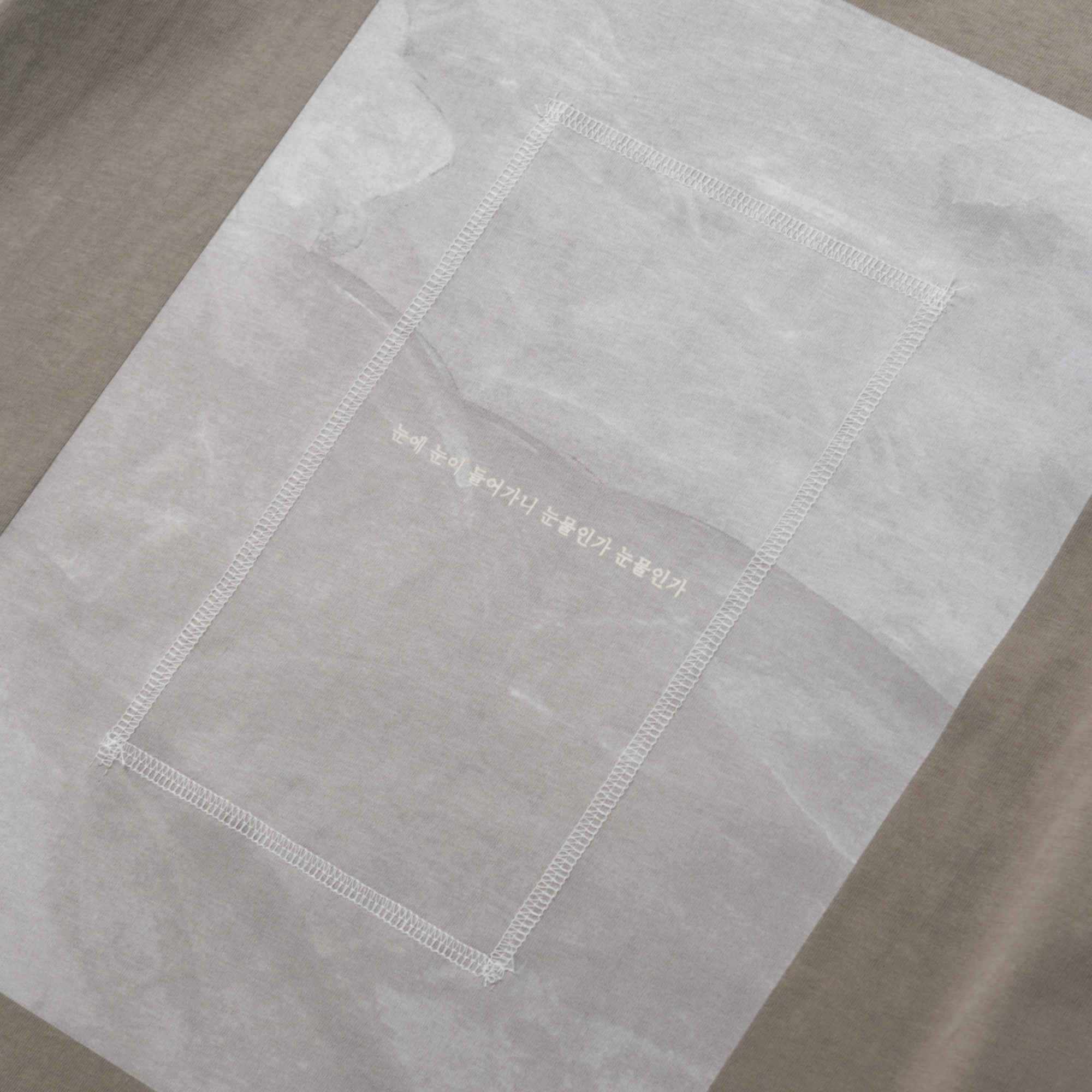 Standard fit tee made from 100% premium cotton. The ‘Frames Tee’ features Korean text silk screen layered onto digital print with a square stitch pattern, combining three mediums on the shirt. Sourced and made in Korea.