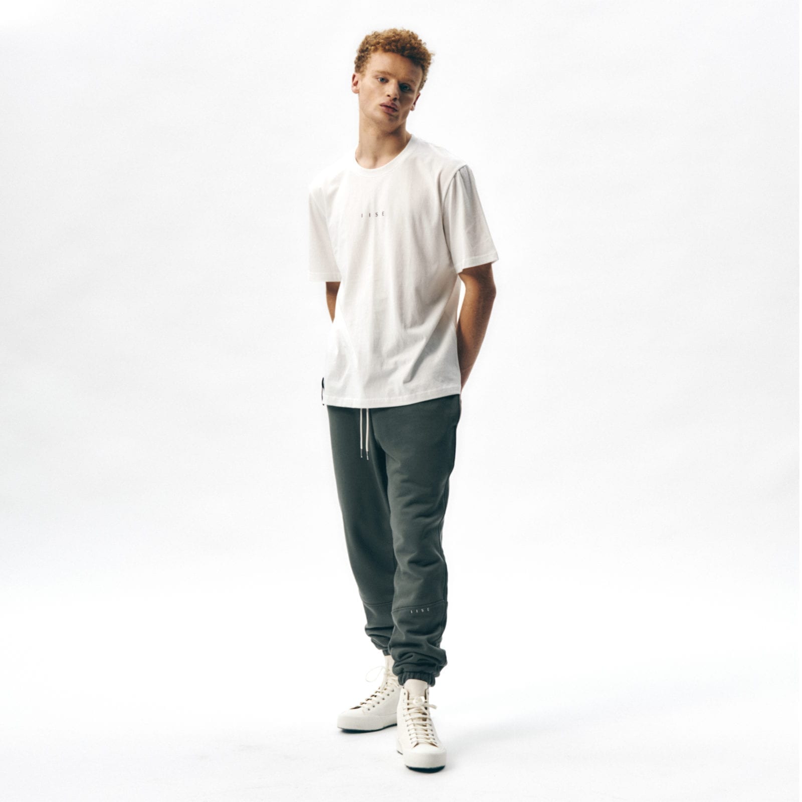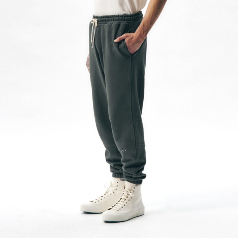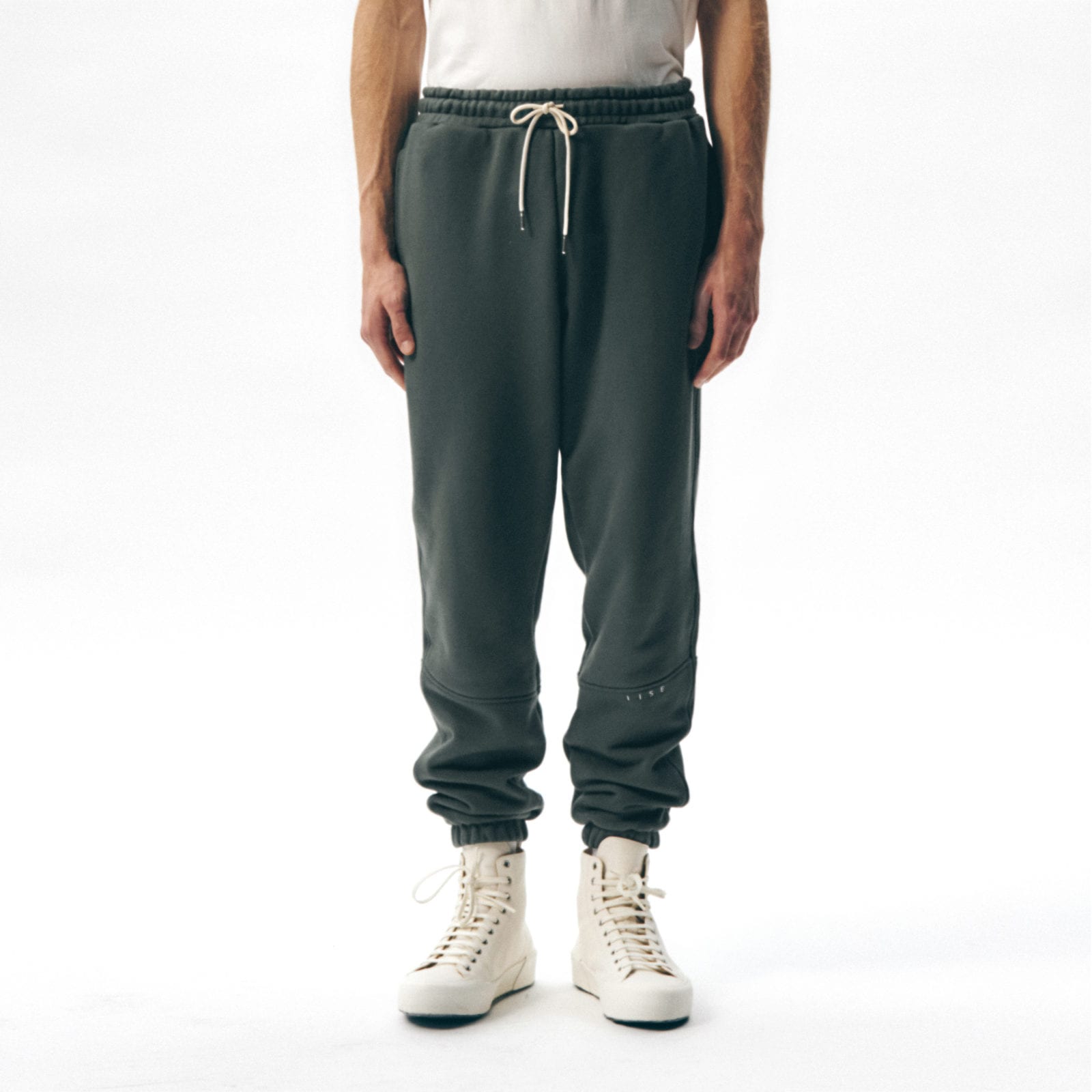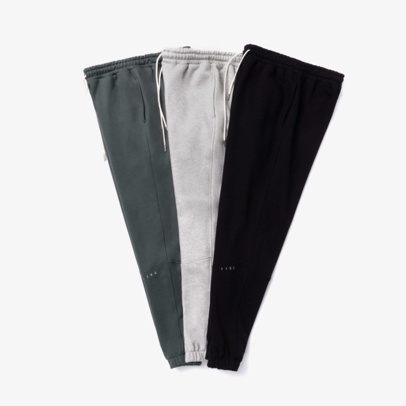 IISE Logo Sweatpant is made from 650g/yd Korean organic terry cotton. Logo engraved metallic string tips and embroidery. Relaxed fit in the rise that tapers from the knee to the cuff. Gusset panel below rise for a more comfortable fit.