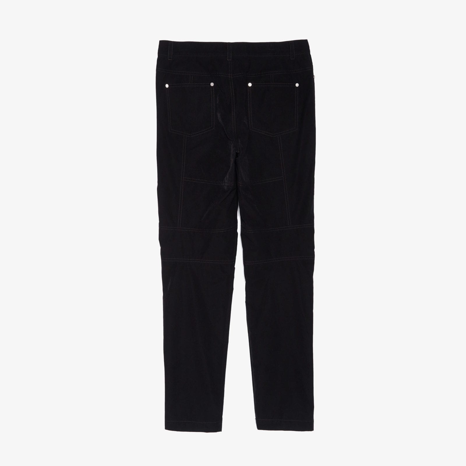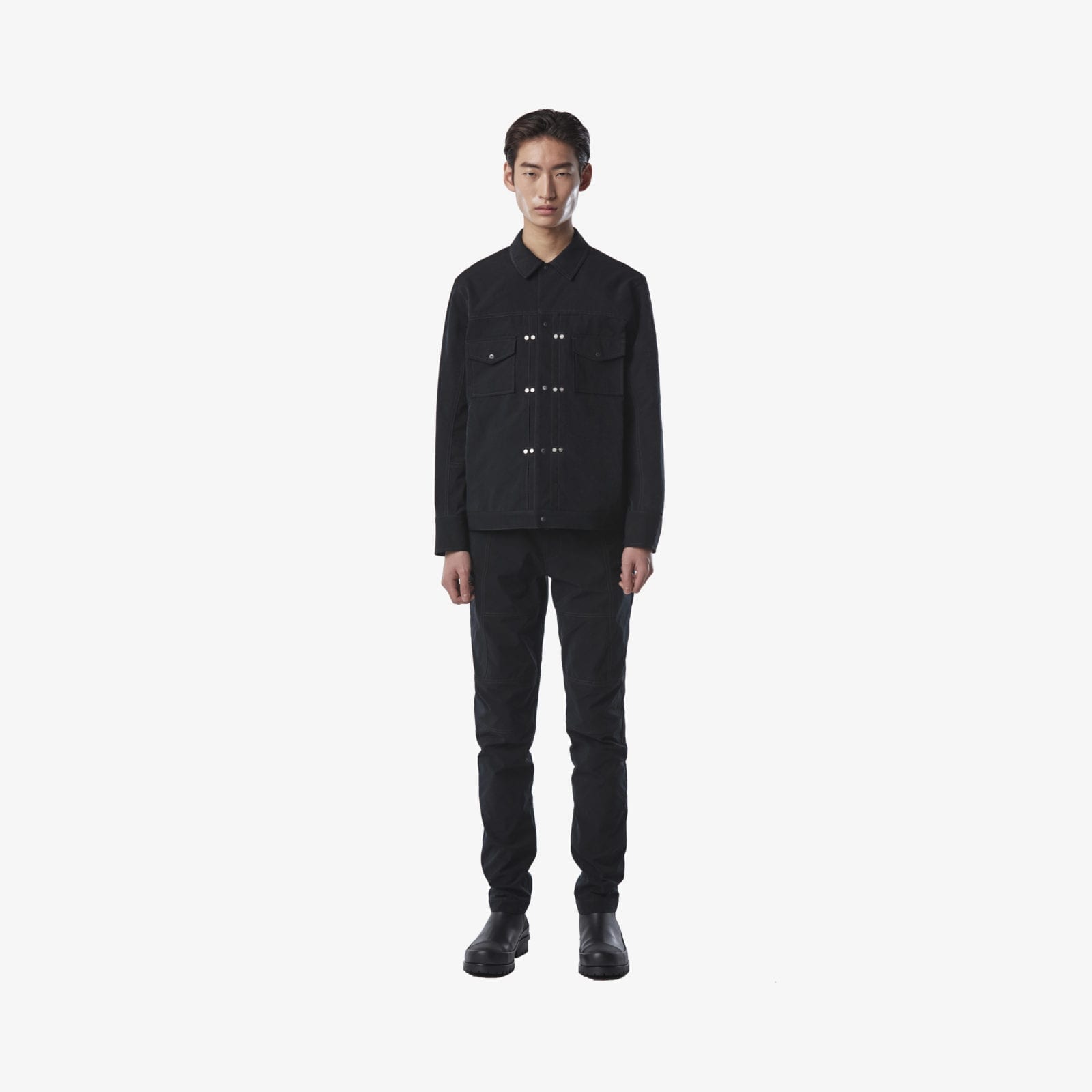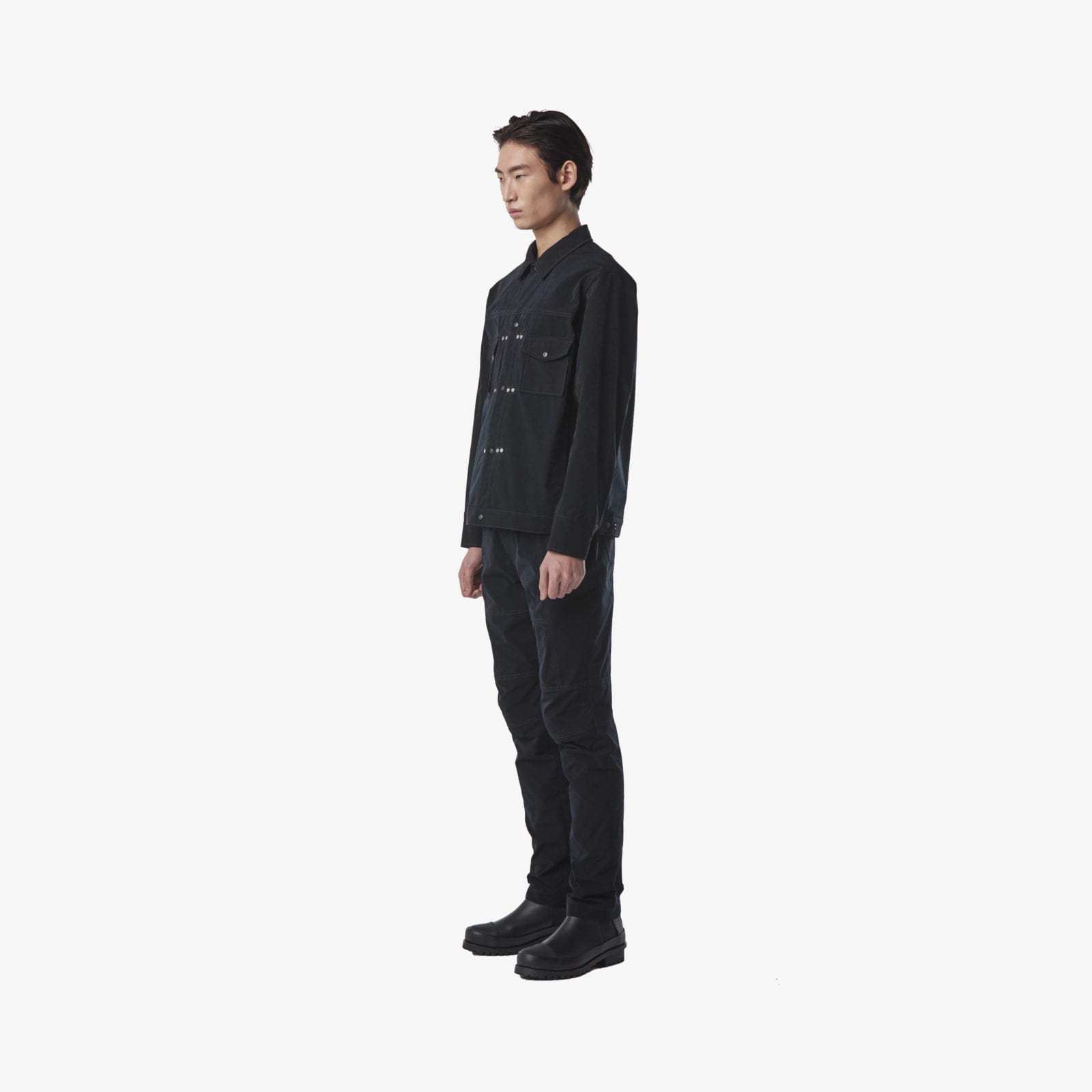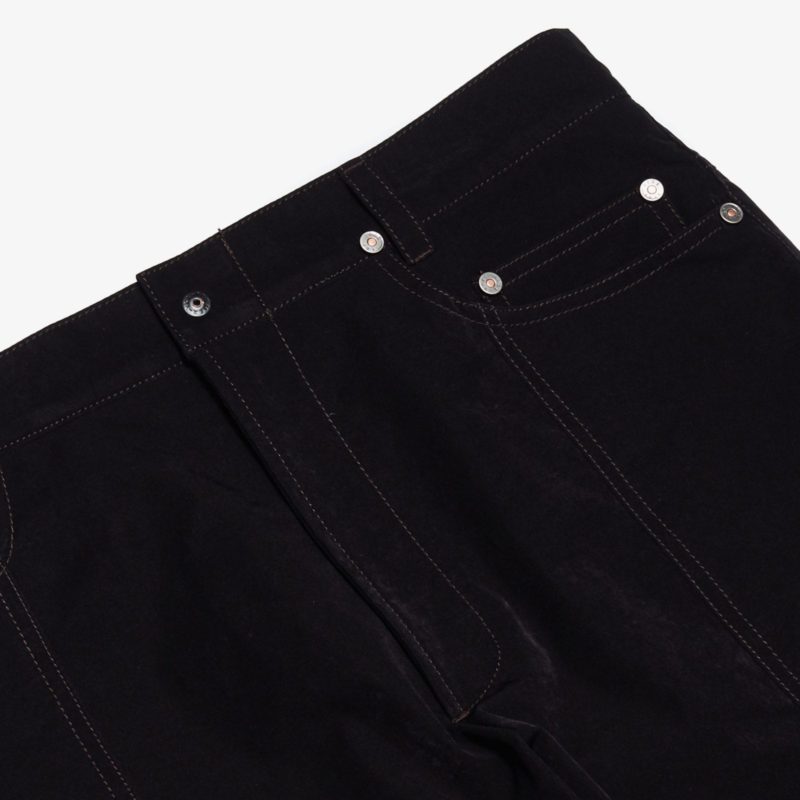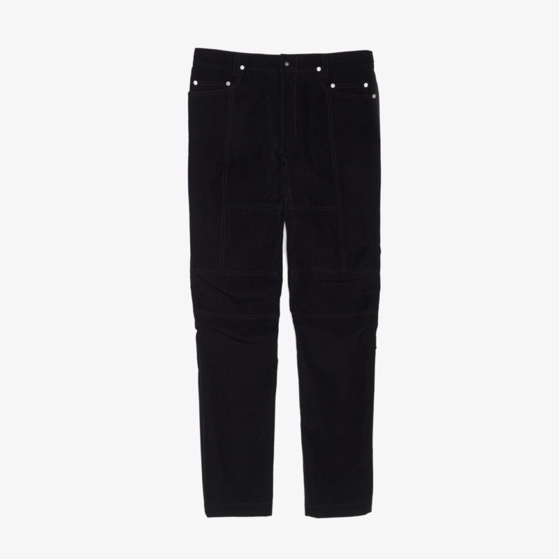 The Moto Pant features our signature panel detailing with custom rivet hardware. Slim fit with tapered hem, the fit was based off of motorcyle wear, with knee darts to allow more comfort when sitting. Model is wearing a size medium. (Model Height: 6’1 / 185 cm, Weight: 145 lbs / 65 kg)