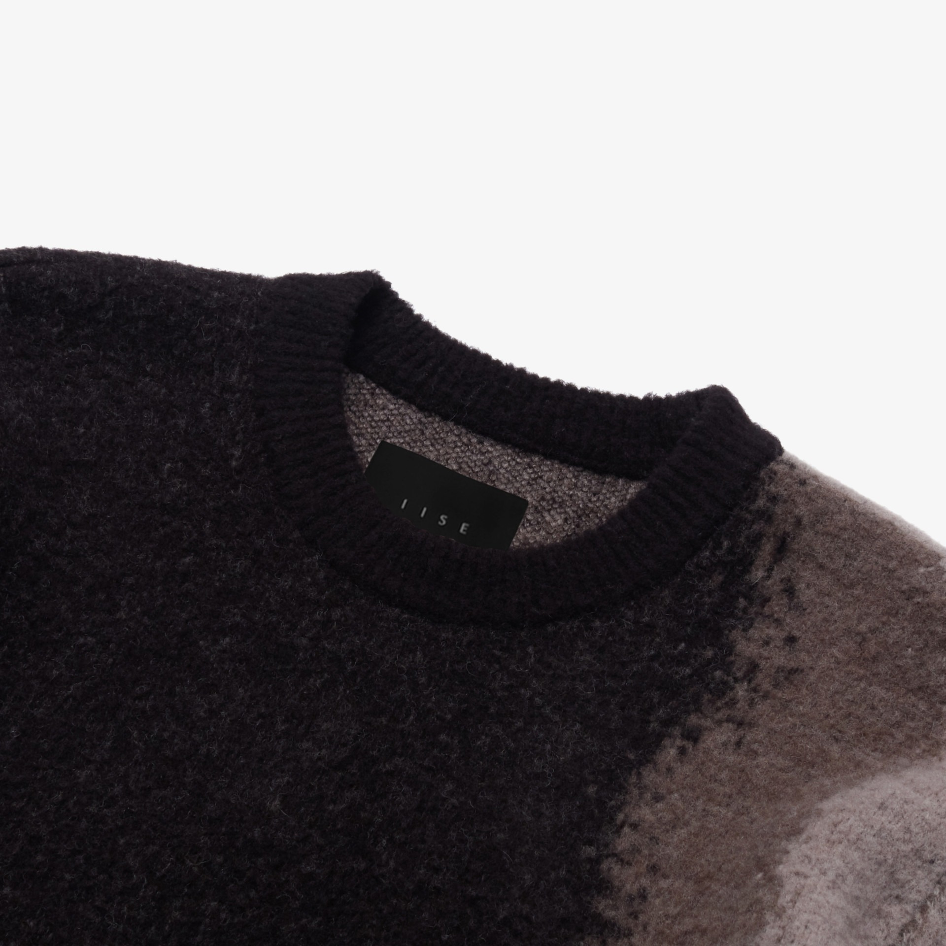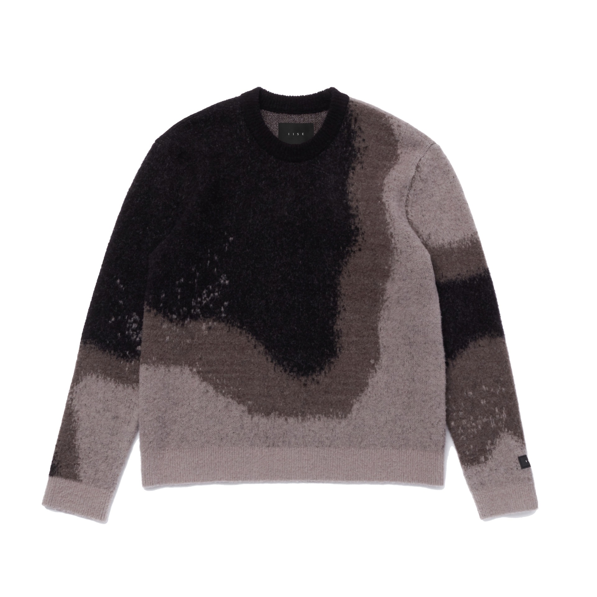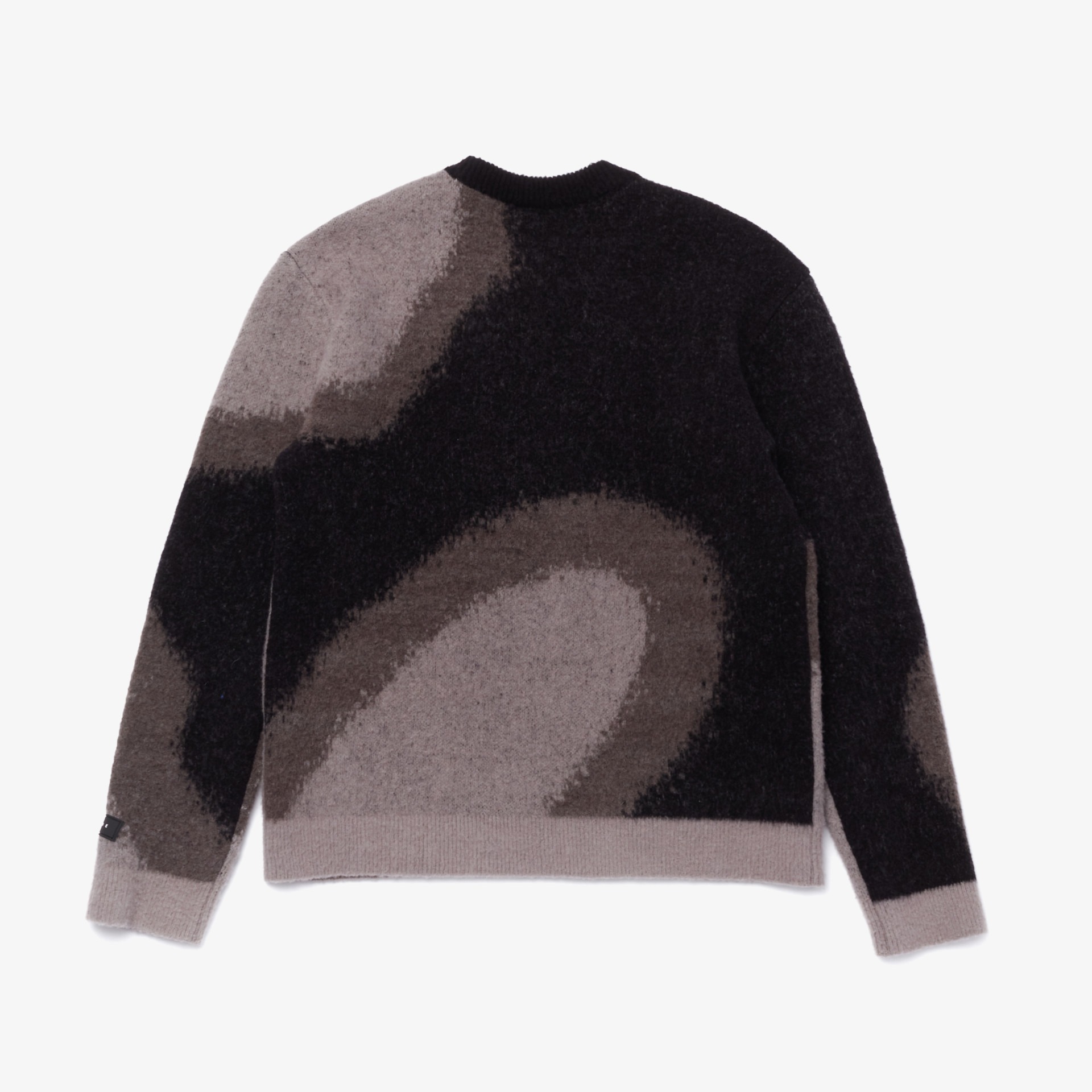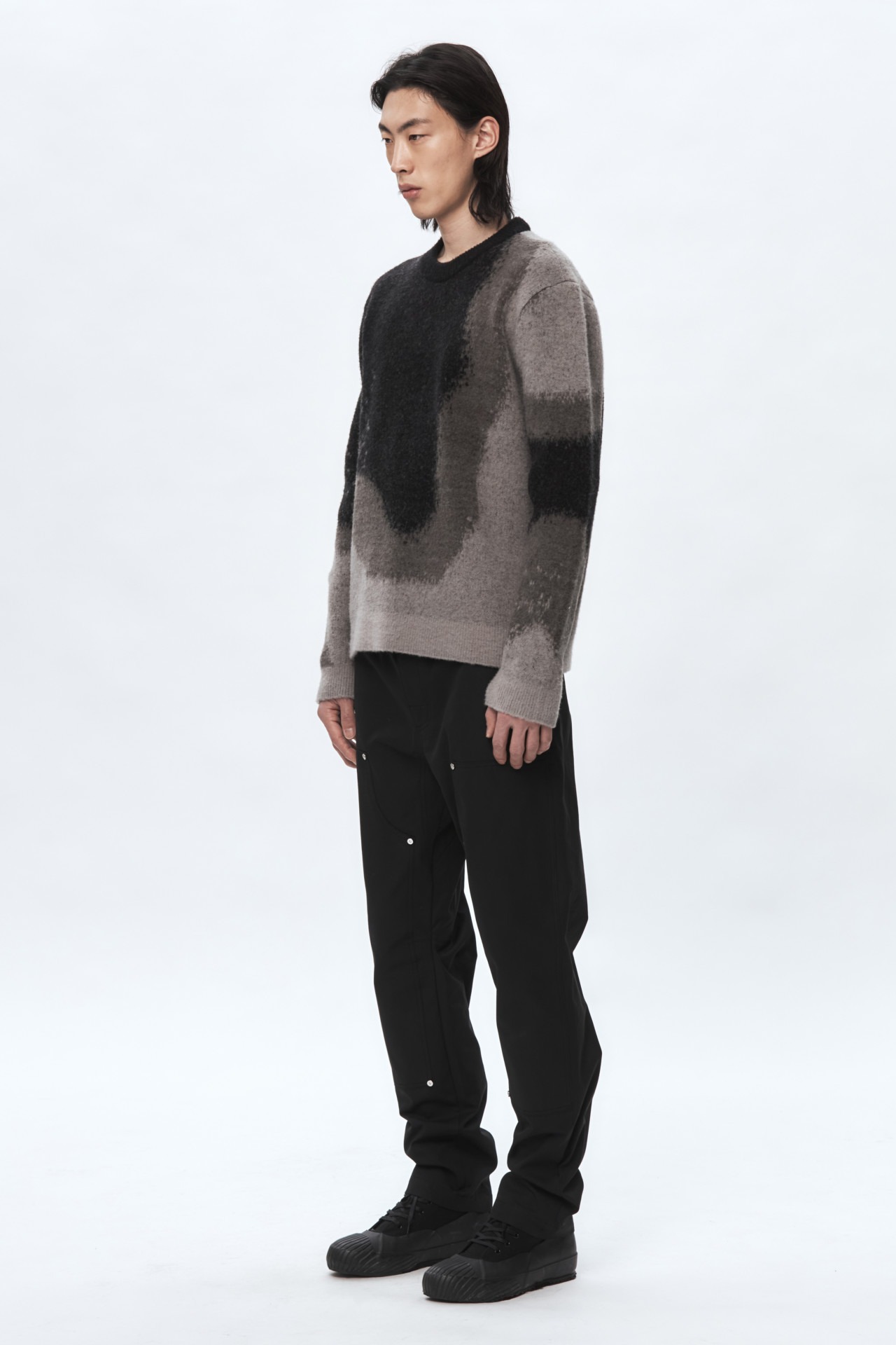 Thick wool blend sweater featuring textures found in Seoul’s industrial district. Brushed wool surface with ribbed cuff and hem. Standard fit with silicon logo patch on sleeve.